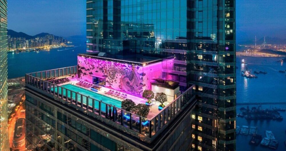 W Hong Kong’s spectacular outdoor swimming pool. Image from W Hong Kong.
